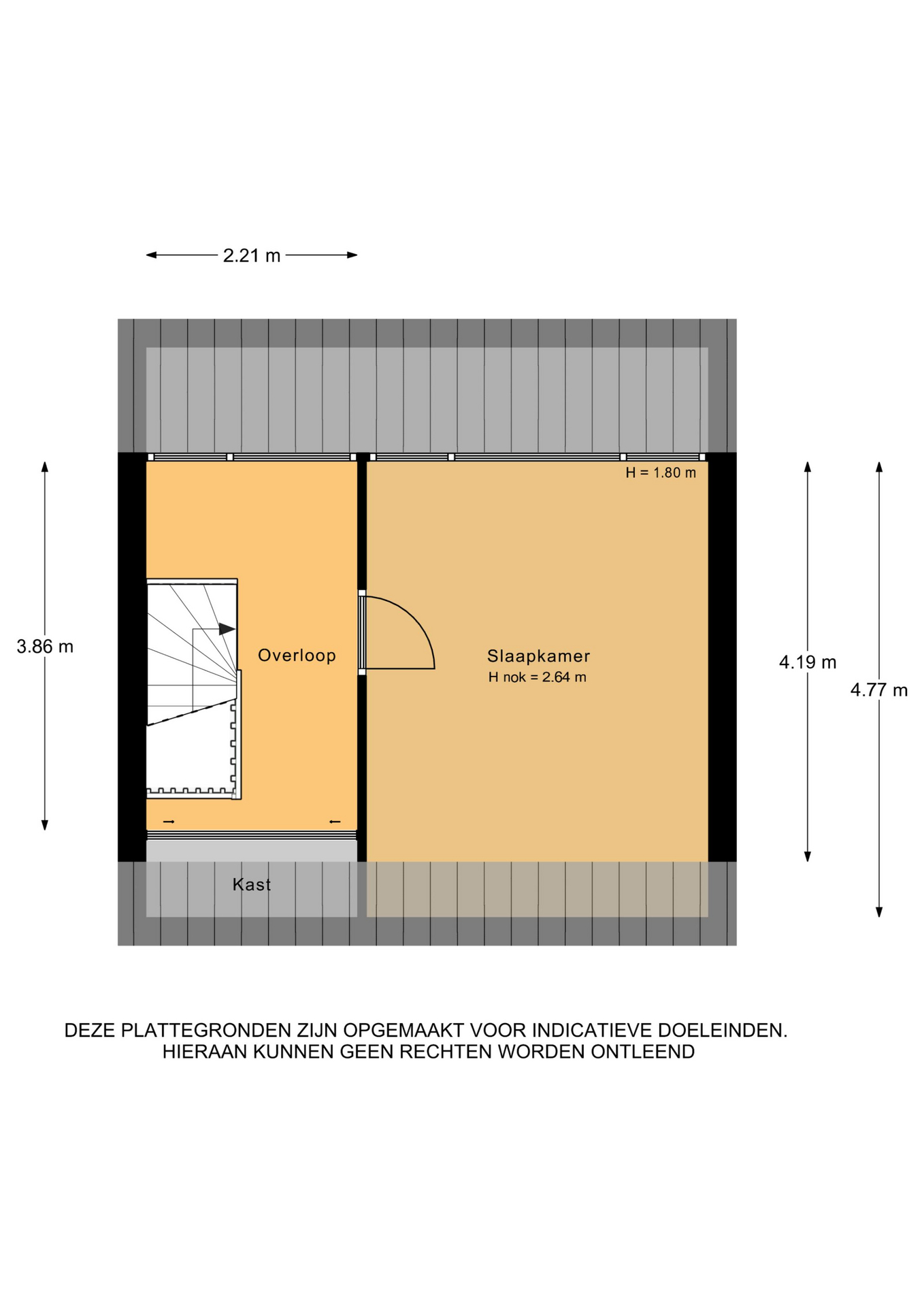 2e Verdieping: door middel van de vaste trap kom je op de 2e verdieping waar een overloop, royale slaapkamer en veel bergruimte achter de knieschotten te vinden zijn.