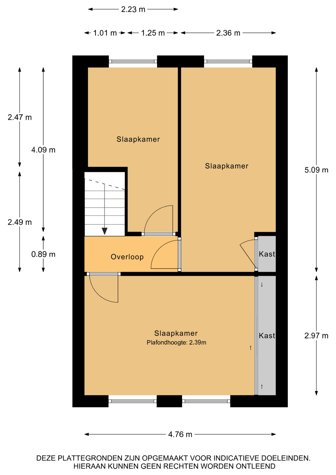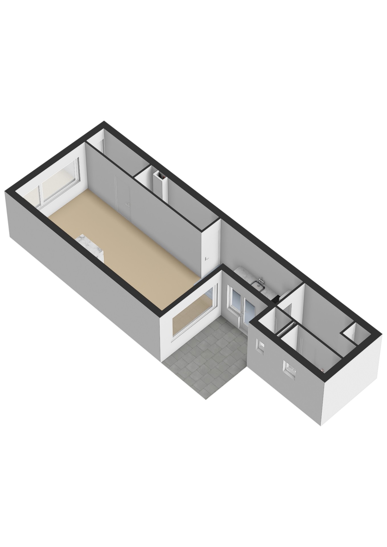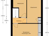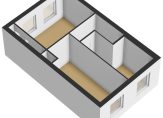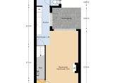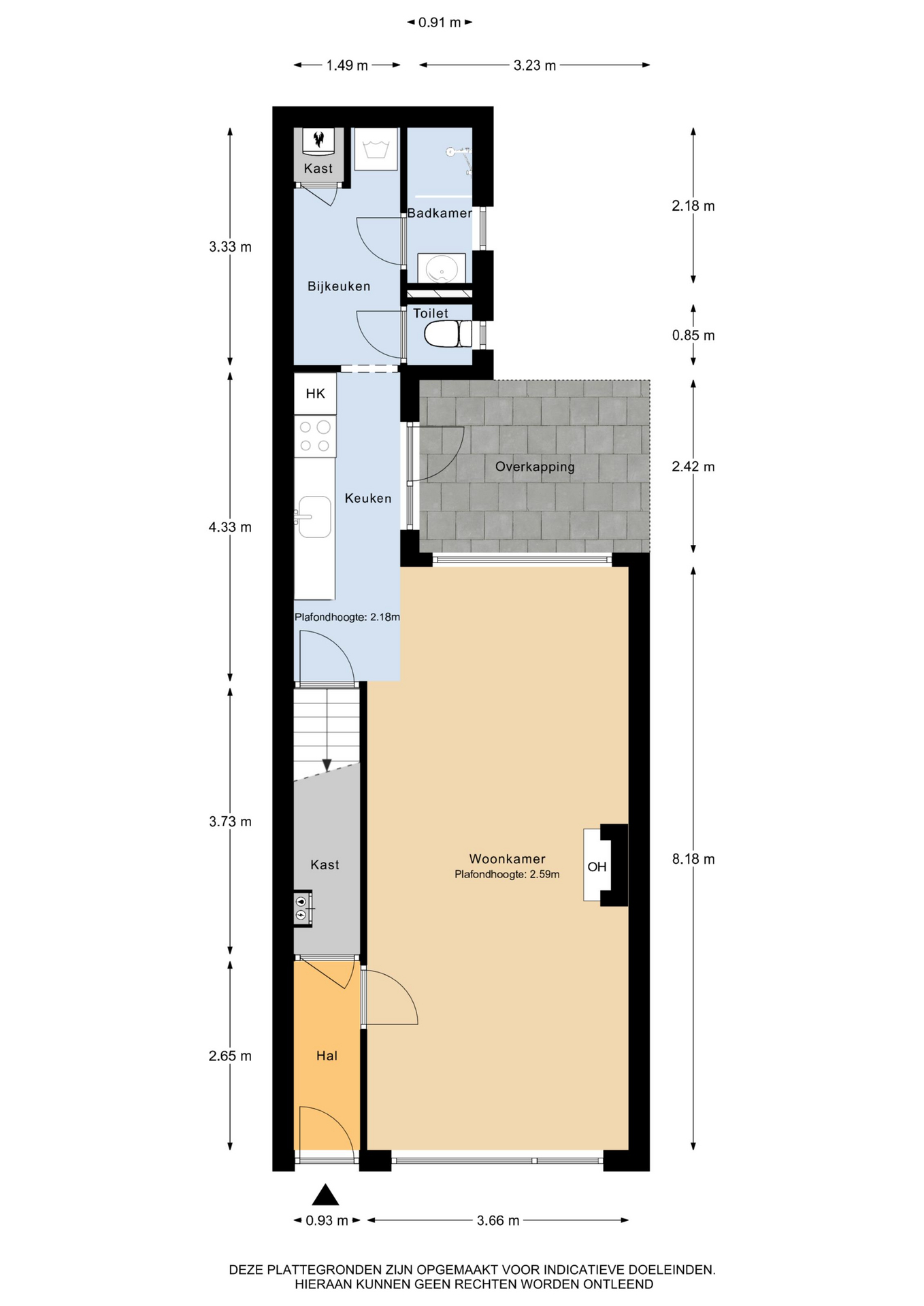 Entree/ hal – ruime trapkast – woonkamer met schouw – open keuken met diverse inbouwapparatuur – afgesloten trapopgang – bijkeuken met wasmachine aansluiting – vaste kasten met opstelling cv-ketel – toiletruimte – badkamer met douchecabine en wastafelmeubel – deur naar de achtertuin.