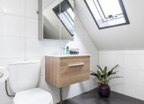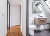 1e Verdieping: Overloop – drie slaapkamers – badkamer voorzien van 2e toilet, wastafel, douche. Twee slaapkamers beschikken over een dakkapel én een inbouwkast.
