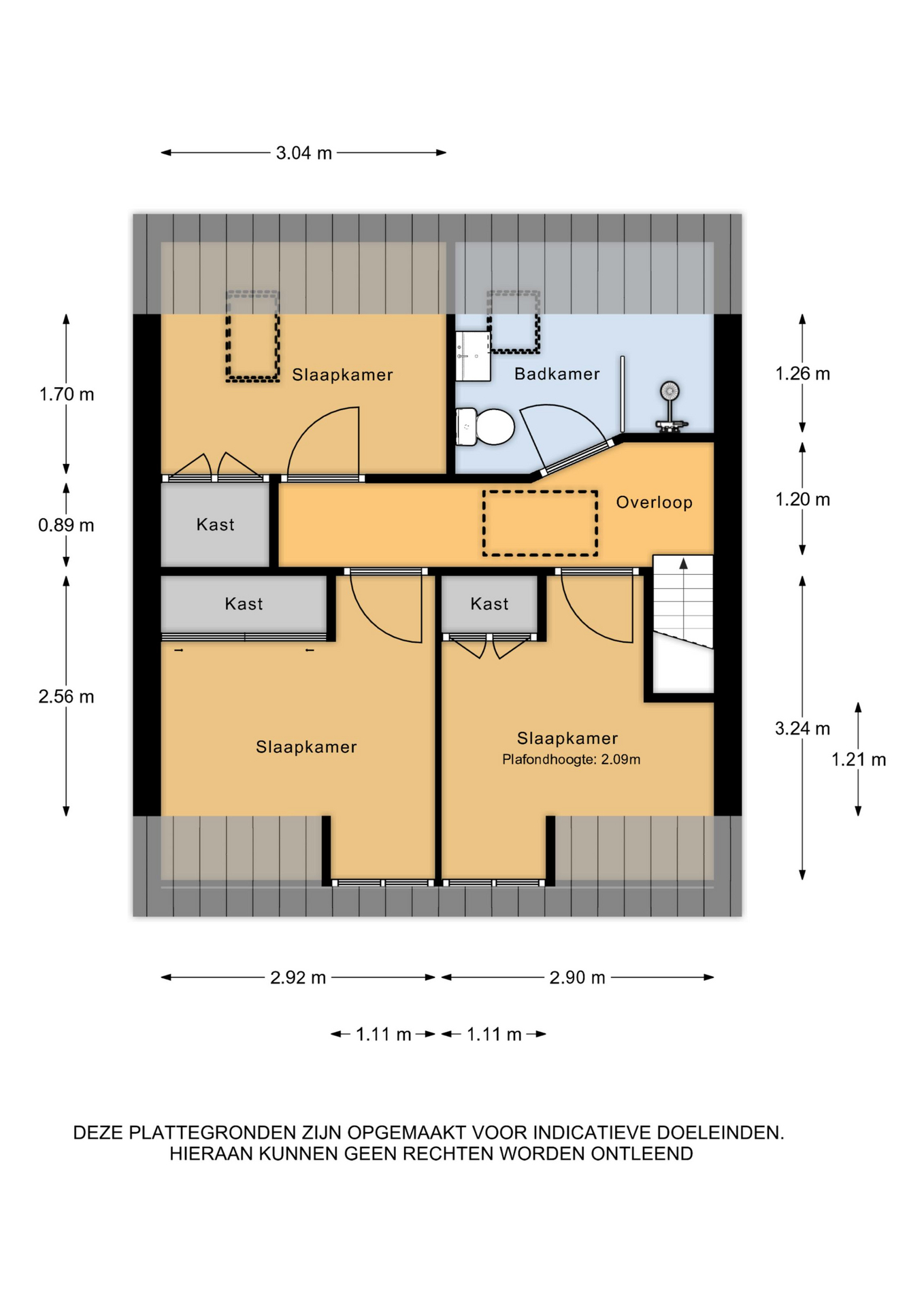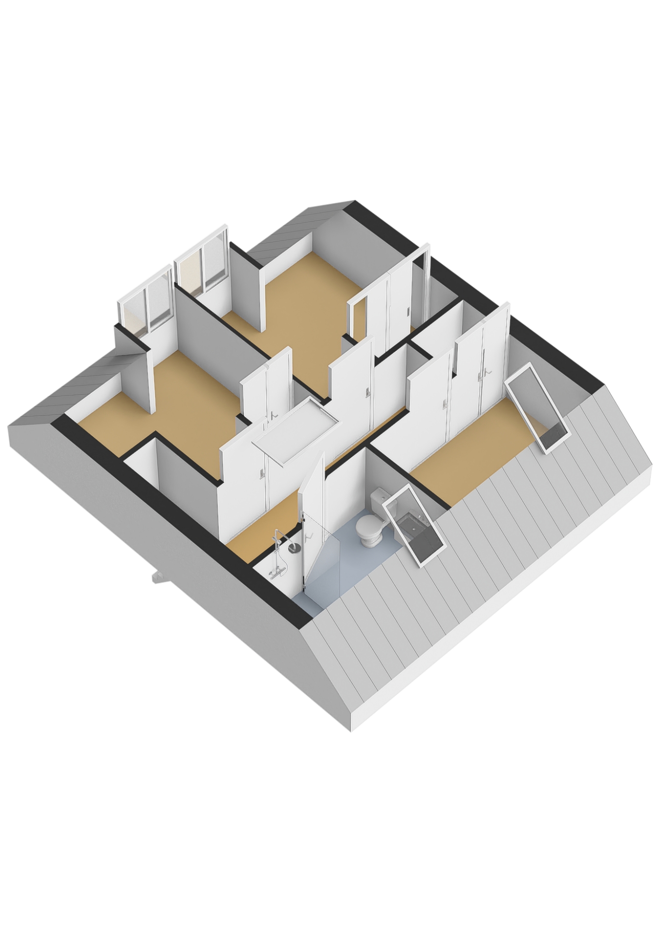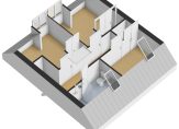 2e verdieping: deze zolderverdieping is te bereiken met een vlizotrap. Zolderruimte en kast met opstelling van de CV-ketel.