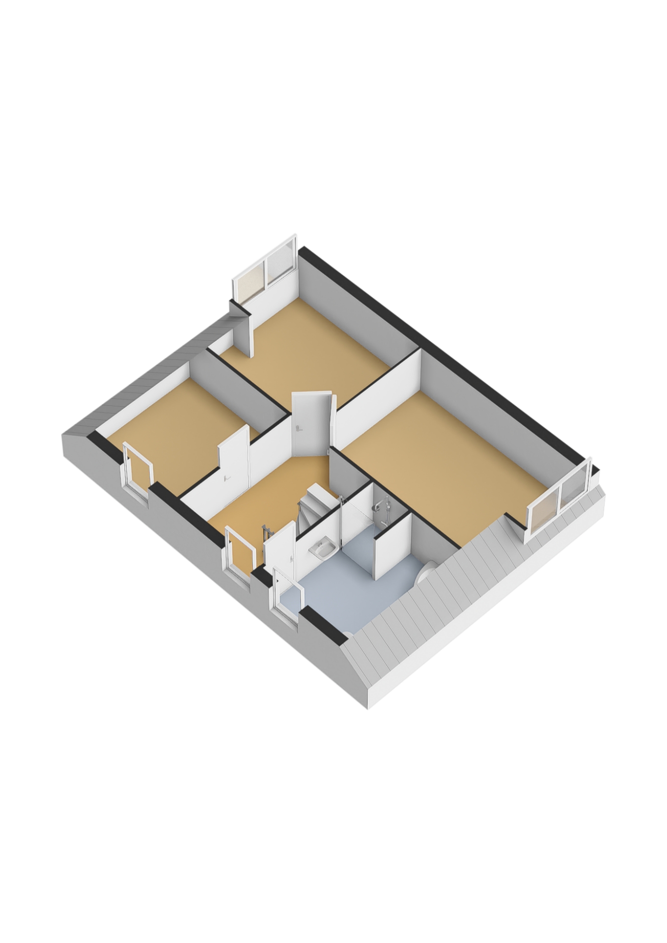 2e Verdieping: de ruime zolderverdieping met dakraam is middels een vaste trap bereikbaar.