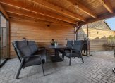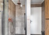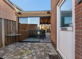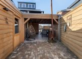 Buiten kun je heerlijk zitten onder de grote veranda met glazen pui. Aan de achterzijde van de woning zijn twee schuren: één geïsoleerde berging met wasmachine- en drogeropstelling en een tweede schuur voor gereedschap e.d. Naast het huis kun je je eigen auto parkeren en is nog een houten fietsenberging en een extra opslagruimte.