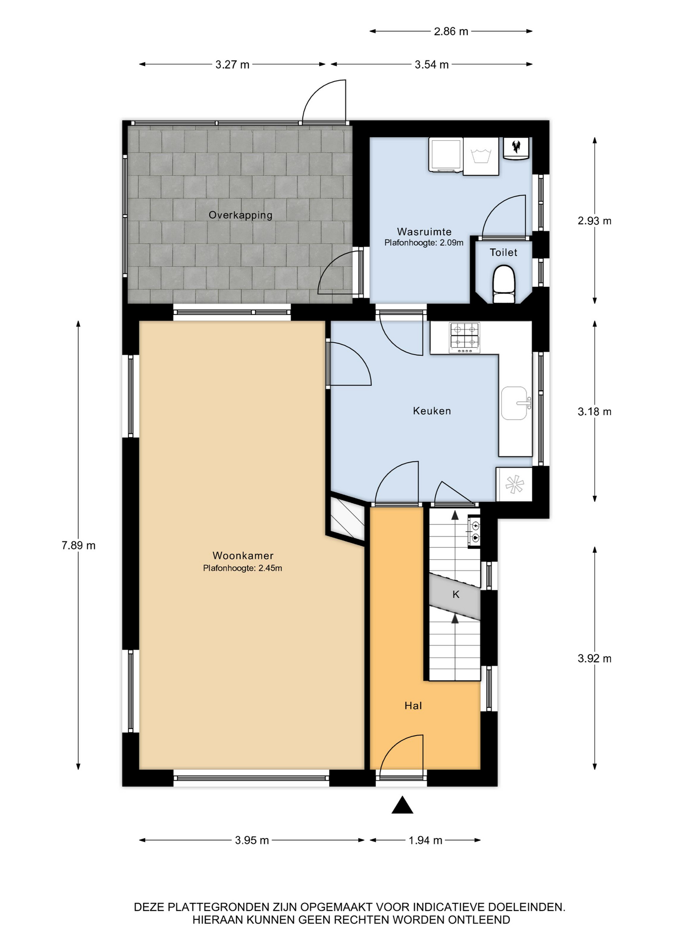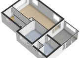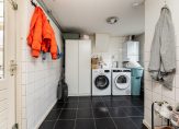 Begane grond: entree/ hal met trapopgang – dichte keuken – toegang naar provisiekelder – woonkamer – bijkeuken met wasmachine-, droger- en CV-opstelling.