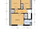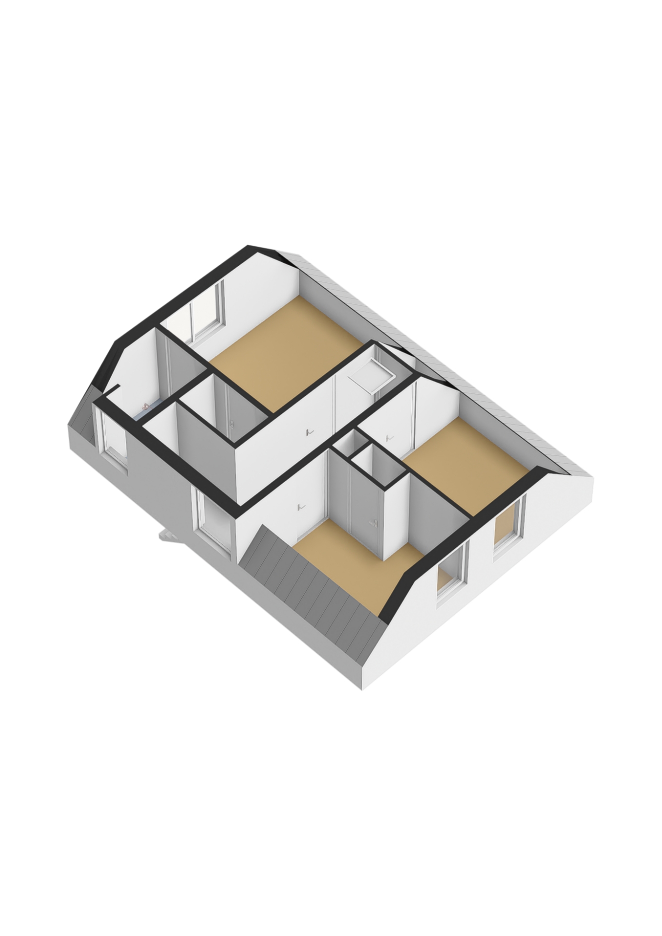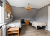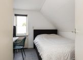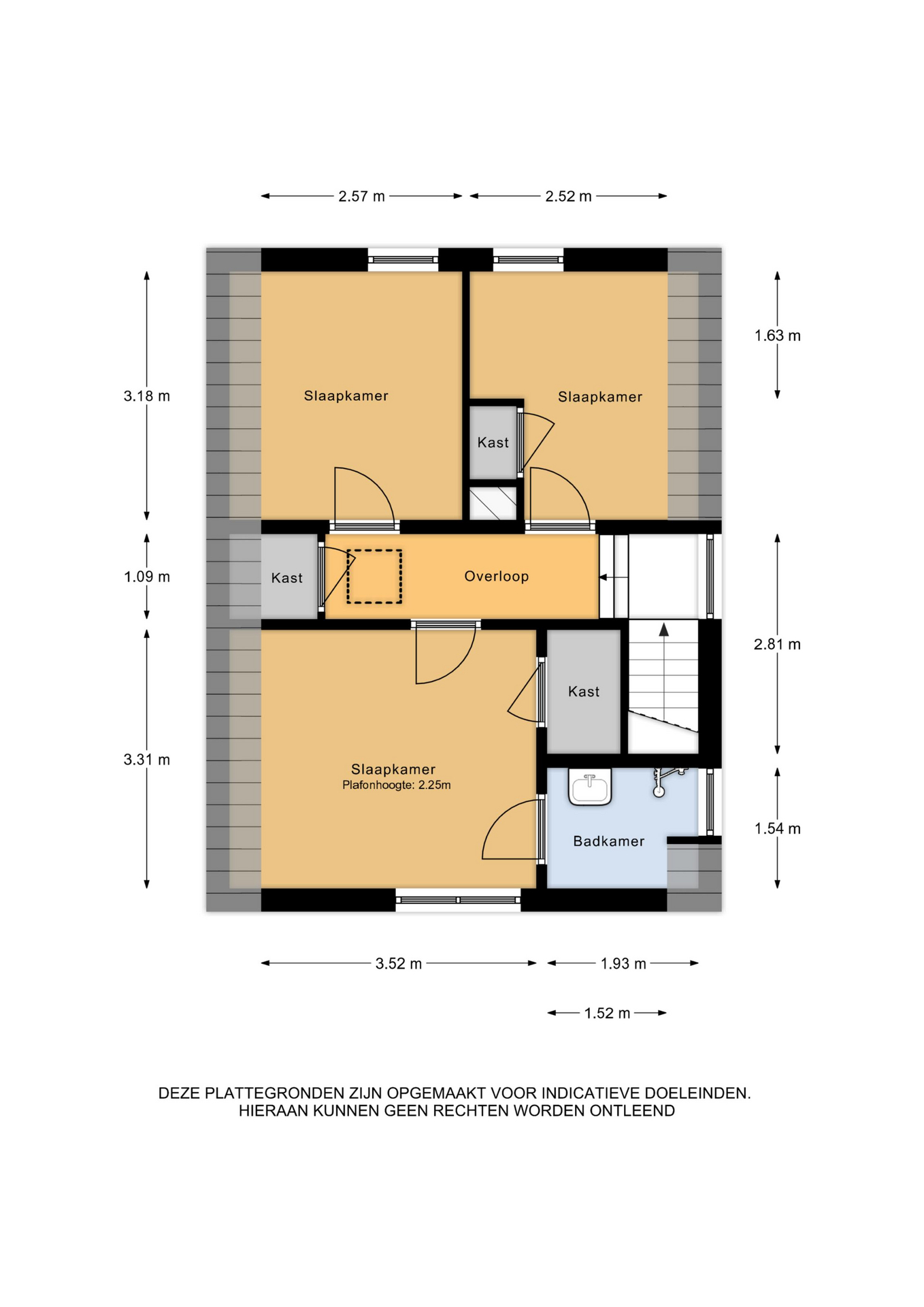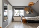1e Verdieping: overloop met vaste kast – drie slaapkamers, waarvan twee met vaste kast – badkamer met douche en wastafel.