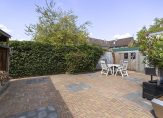De onderhoudsvriendelijke achter- en zijtuin liggen gunstig op het zuidwesten, zodat je hier de hele dag van de zon kunt genieten. Daarnaast is er deels stenen berging (ook van binnenuit bereikbaar) en een houten berging voor extra opslagruimte.