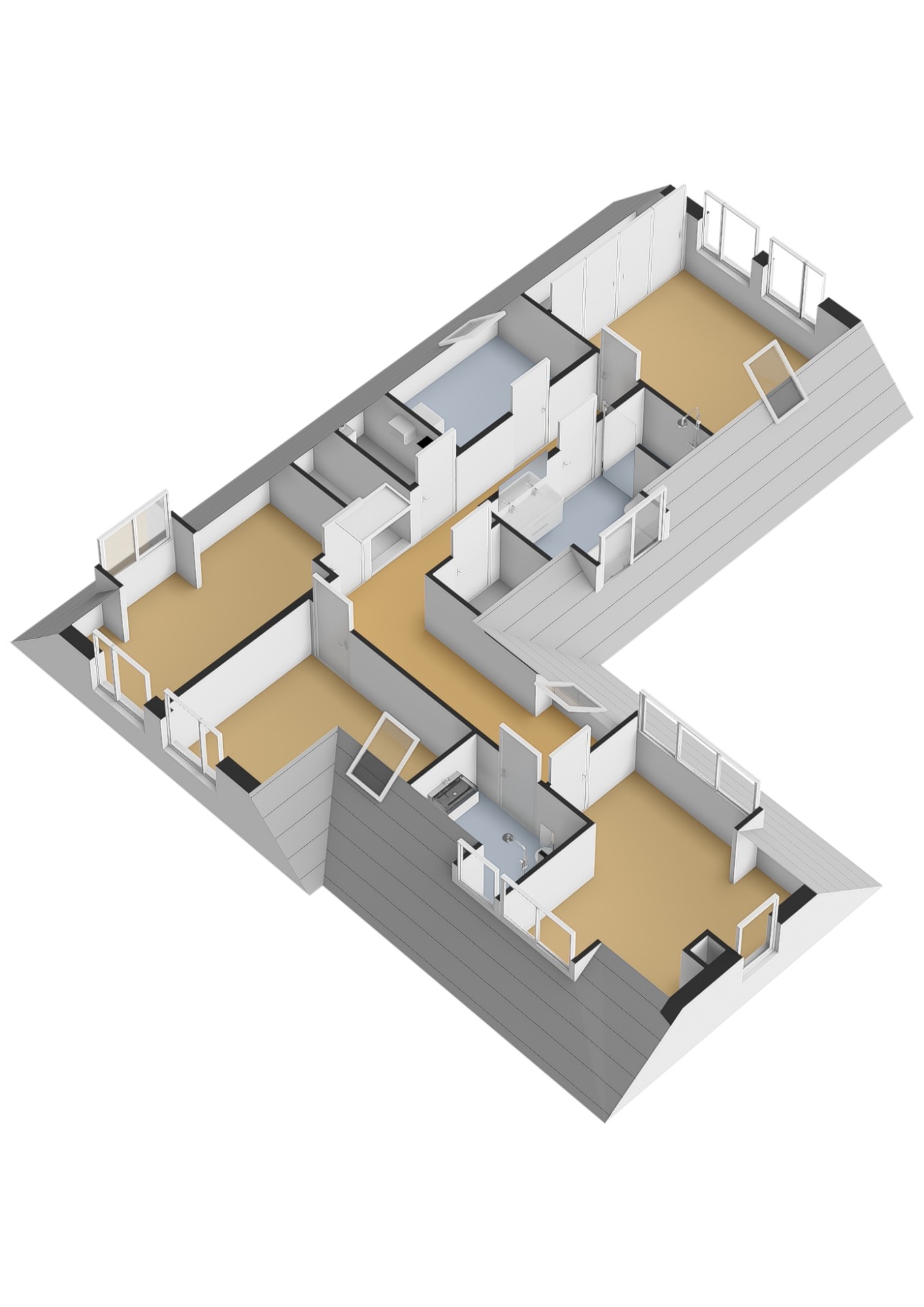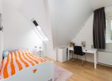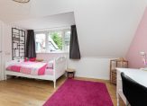 Op de verdieping zijn vier ruime slaapkamers en twee badkamers. De vijfde kamer met wasmachine-aansluiting kan ook als slaapkamer gebruikt worden. Mocht u naast de ruime garage/ schuur nog bergruimte tekort komen, de bergzolder over de gehele woning biedt voldoende ruimte!