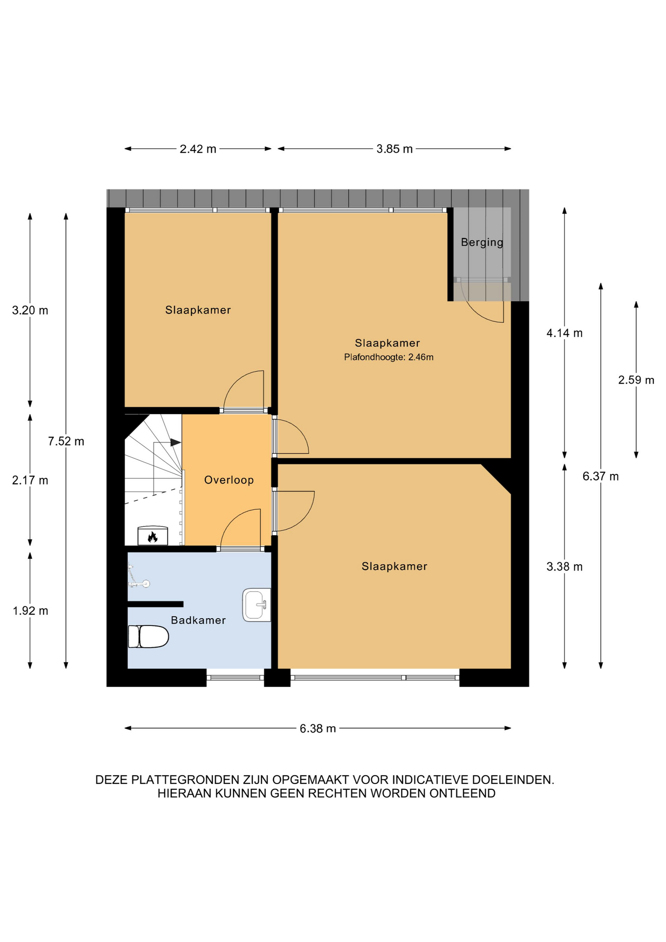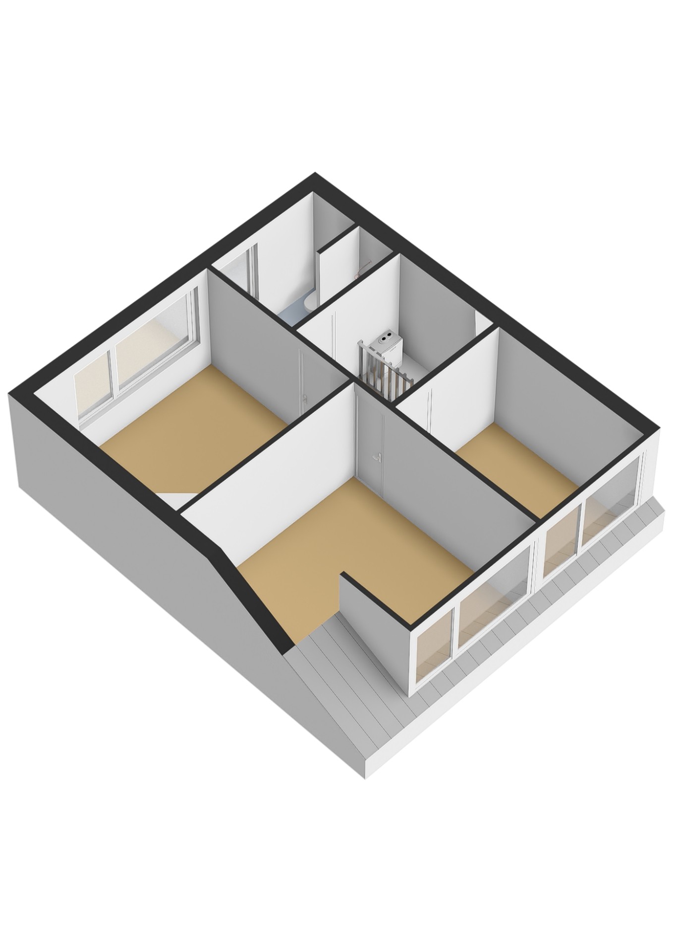 Verdieping in het appartement: overloop met CV-opstelling – 3 slaapkamers – badkamer.