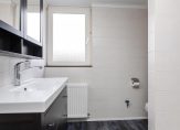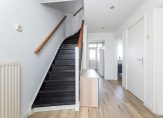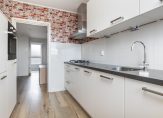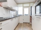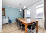 Binnen ziet het appartement er keurig uit. Een tijdloze witte keuken, een woonkamer met aparte eetkamer en op de verdieping drie grote slaapkamers en een badkamer met douche, toilet en wastafelmeubel.
