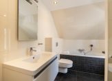 1e Verdieping: overloop – drie royale slaapkamers – ruime badkamer met ligbad met whirlpool, douchehoek met douchepaneel voorzien van diverse standen, toilet en wastafelmeubel.