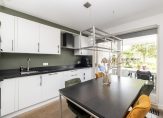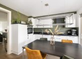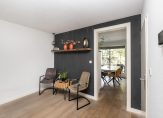 Begane grond: entree/ hal met toilet – meterkast – trapopgang naar de 1e verdieping – woonkamer met sfeervolle gashaard – woonkeuken met moderne keukenopstelling – bijkeuken – berging (voormalige garage) die voor diverse doeleinden te gebruiken is. Hier bevindt zich de aansluiting voor de wasmachine- en droger. De keuken is voorzien van de volgende inbouwapparatuur: grote koelkast, inductiekookplaat, afzuigkap, grote oven en vaatwasser.