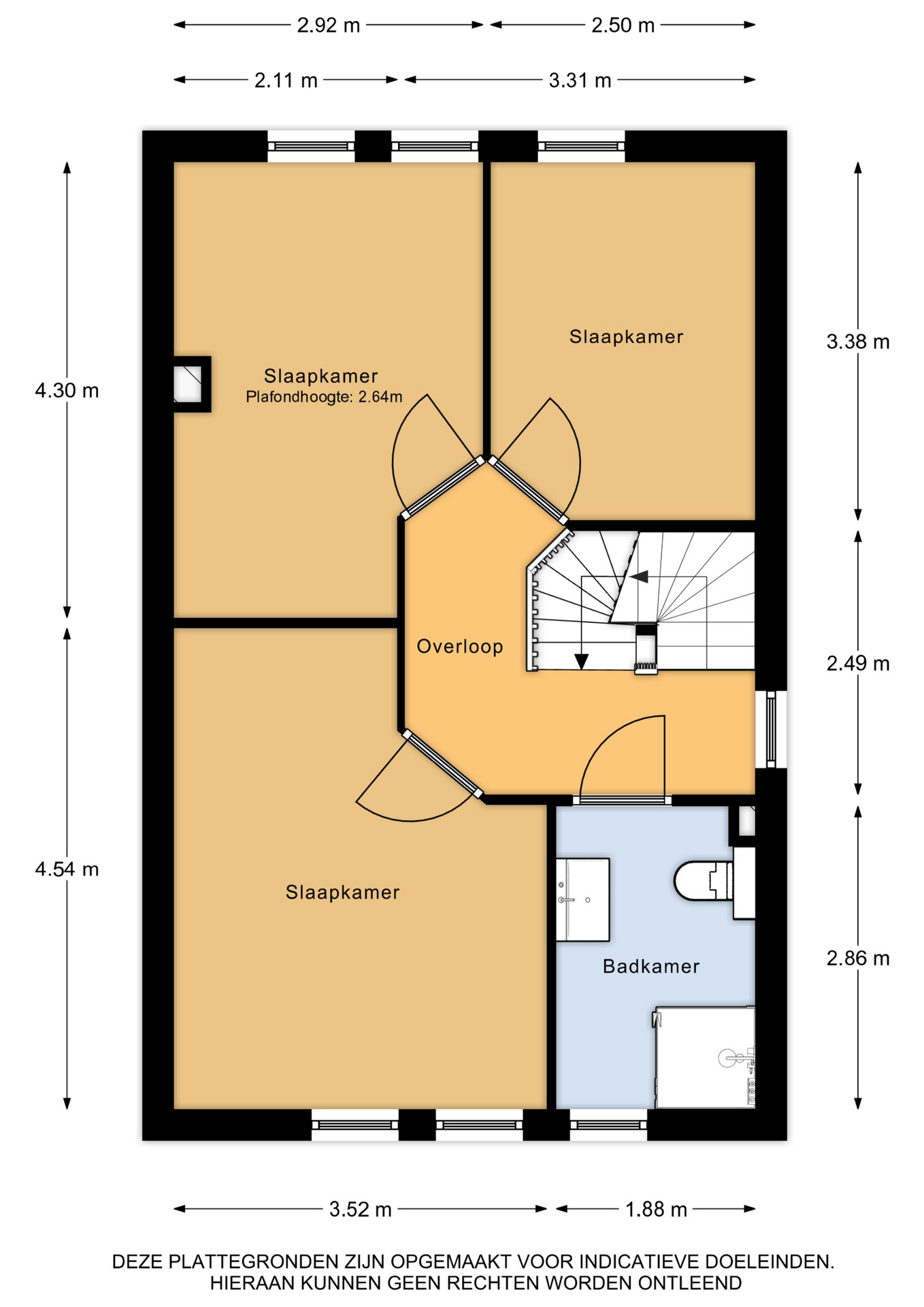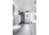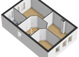 1e Verdieping: overloop – drie ruime slaapkamers, waarvan één kamer met vaste kast – royale lichte badkamer met wastafelmeubel, douchecabine en toilet. In de badkamer is een aangename vloerverwarming aanwezig.