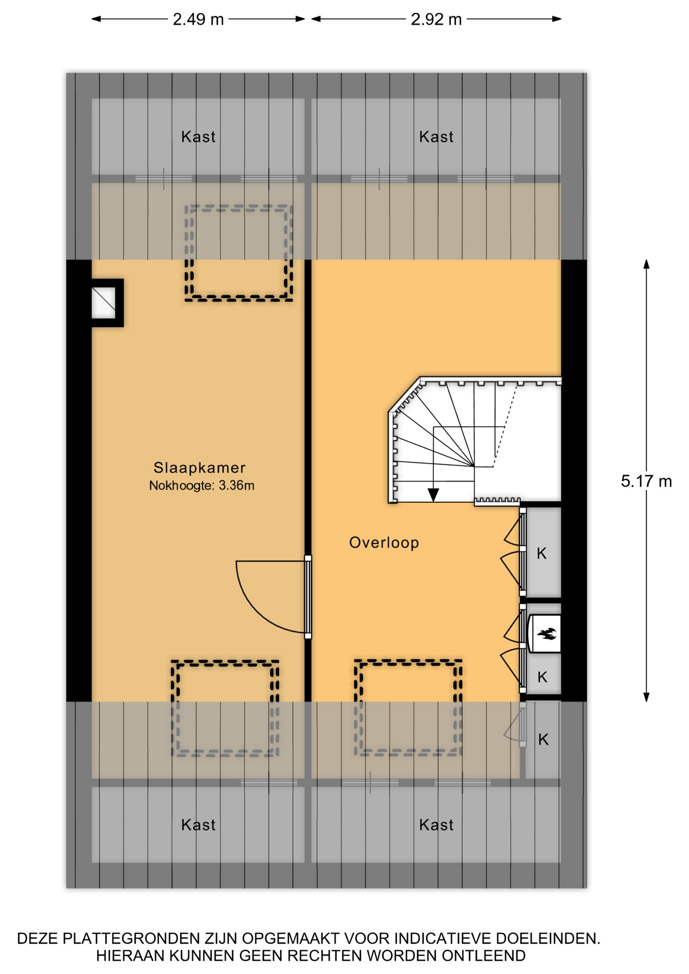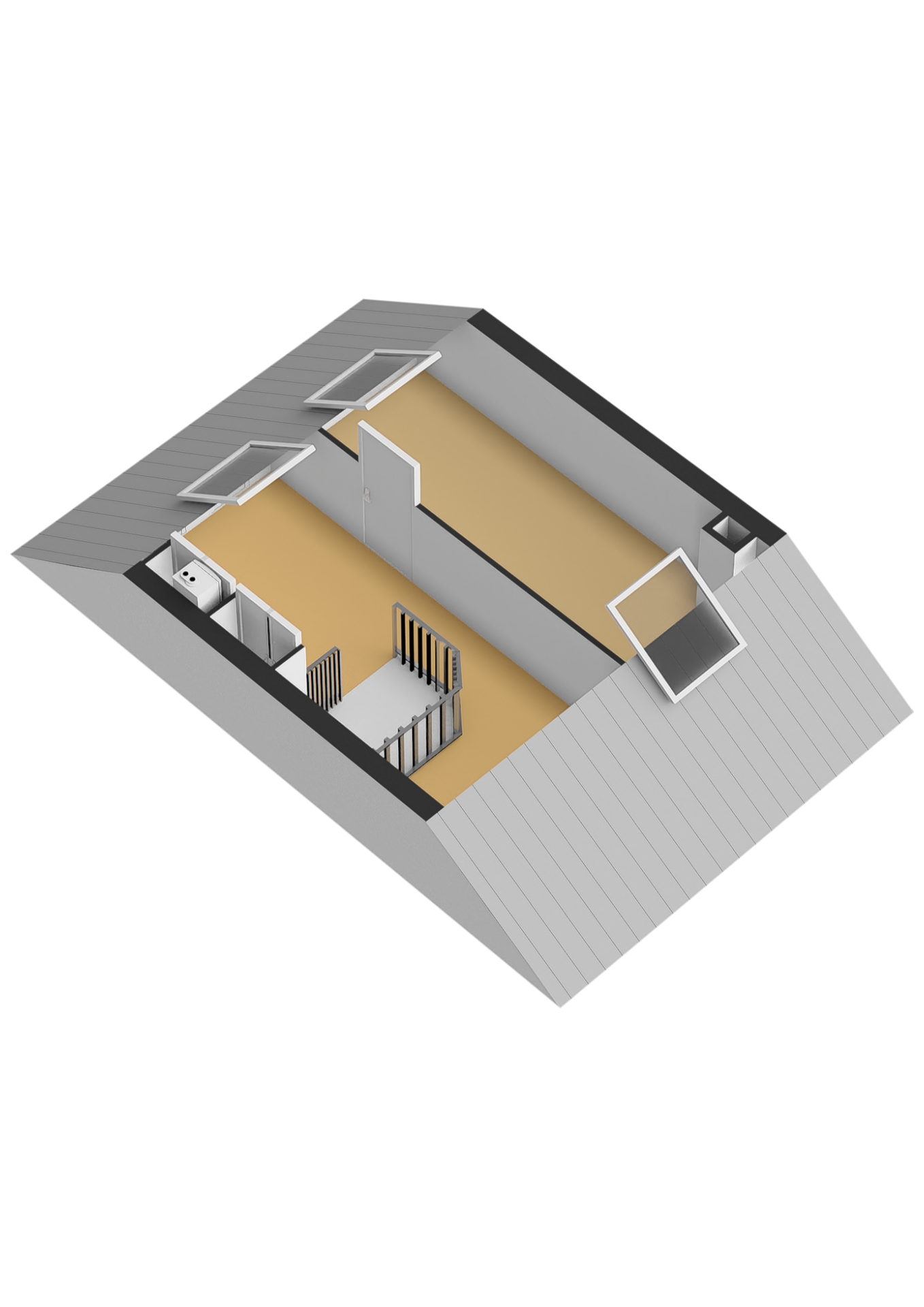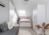 2e Verdieping: ruime voorzolder met dakraam, vaste kasten met opstelling CV en bergruimte achter de knieschotten – grote vierde slaapkamer met veel licht door de dakramen.