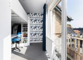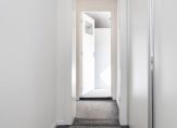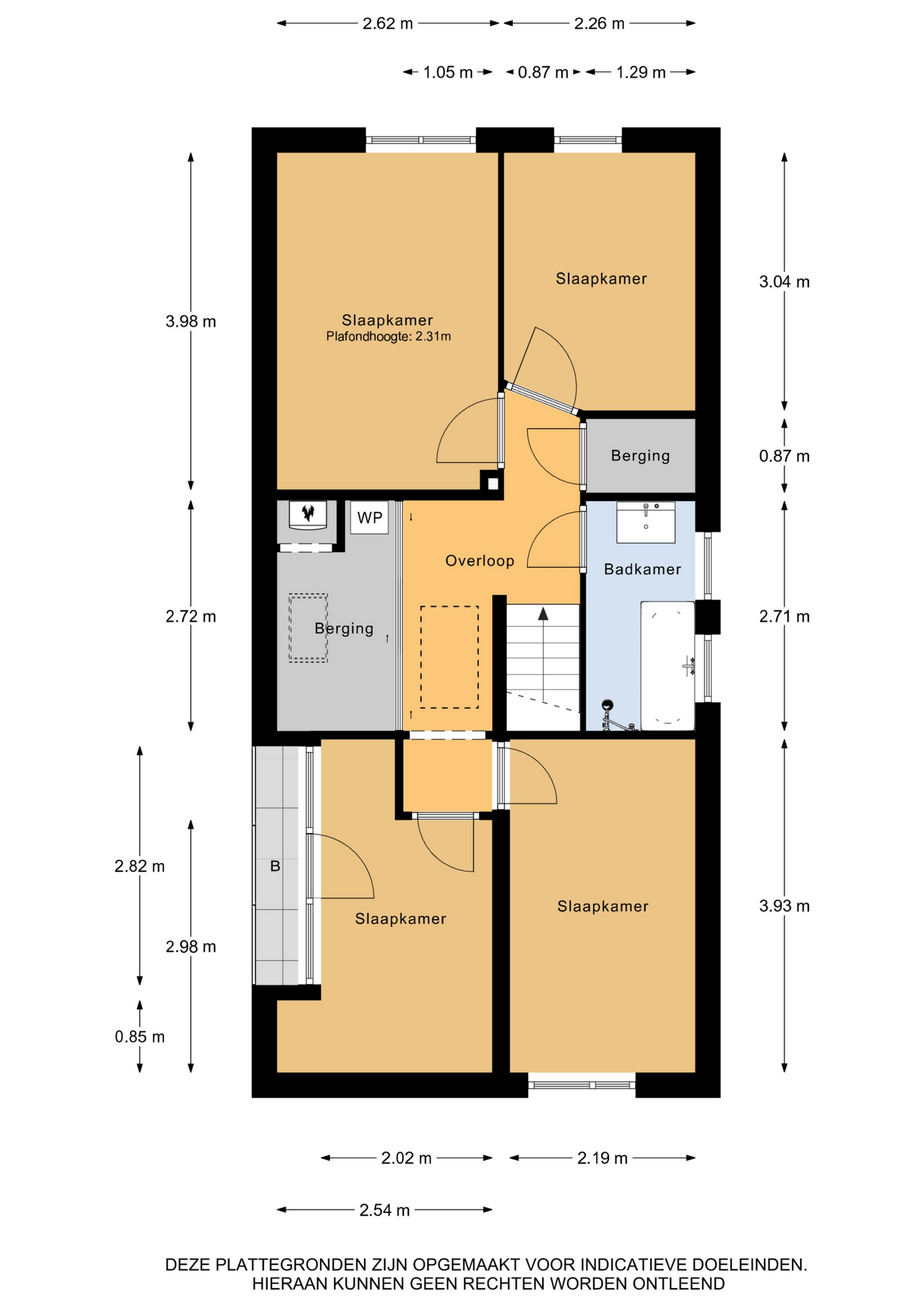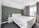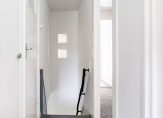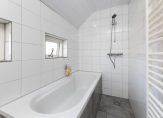 1e Verdieping: overloop – vier slaapkamers – badkamer met wastafel, ligbad en douche – vaste kast met opstelling CV-ketel – ruime berging/ werkkamer.