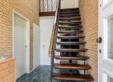 Begane grond: entree/ hal met trapopgang naar de 1e verdieping – meterkast – slaapkamer – badkamer met douche, ligbad, toilet en wastafel – aparte toiletruimte met fonteintje – lichte woonkamer met houtkachel en airco – woonkeuken voorzien van diverse inbouwapparatuur waaronder een vaatwasser, inductiekookplaat, afzuigkap, magnetron, oven en koelkast – bijkeuken met achteringang – wasruimte met o.a. wasmachine en drogeraansluiting – toegang tot de garage. Vanuit de wasruimte is de kelder bereikbaar.