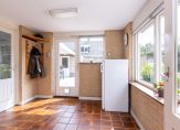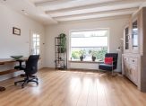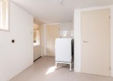 Naast de slaapkamer op de begane grond, die natuurlijk ook goed gebruikt kan worden als werkkamer, is er aan de achterzijde een ruime bijkeuken met een aparte geïsoleerde (was-)ruimte en toegang tot de garage.