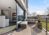 “Ik kan niet wachten tot het mooie weer er aan komt: lange avonden op dit ruime balkon. Fietsers, het zicht op de Prinses Margriethaven en het Zwarte Water. Het is hier aan de rand van Holtenbroek fijn wonen en je hebt altijd wat te zien. Elke dag geniet ik weer van de ruimte in mijn appartement. Slaapkamers genoeg en zelfs een kamer over om als werkkamer te gebruiken. De grote raampartijen zorgen voor veel licht, dus ook al ben ik niet op het balkon, vanuit de woonkamer kijk ik ook vrij weg. En dat allemaal op korte afstand van de bruisende binnenstad van Zwolle.”