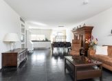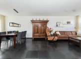 De woonkamer is licht en ruim en voorzien van vloerverwarming (net als de gehele begane grond) en een sfeervolle gashaard. Openslaande tuindeuren bieden toegang tot de tuin. Erg praktisch is de trapkast die extra bergruimte biedt. Vanuit de woonkamer is er zicht op de straat en op de tuin.