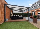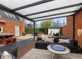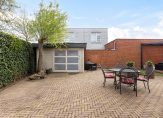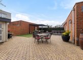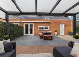 De tuin ligt op het zonnige zuidoosten en is bereikbaar via een achterom. Er is een houten blokhut en een grootte overkapping en voor de garage is er parkeergelegenheid voor 2 auto’s op eigen terrein.